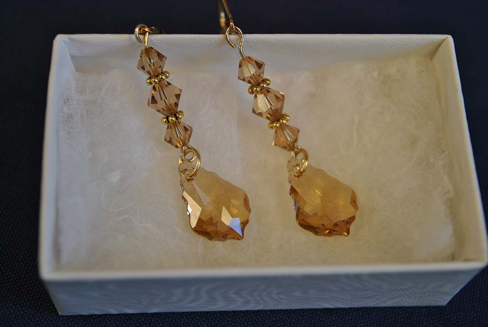 Gold Swarovski crystals and cut glass earrings with 14K gold accent beads and findings by Lynette Assarsson.