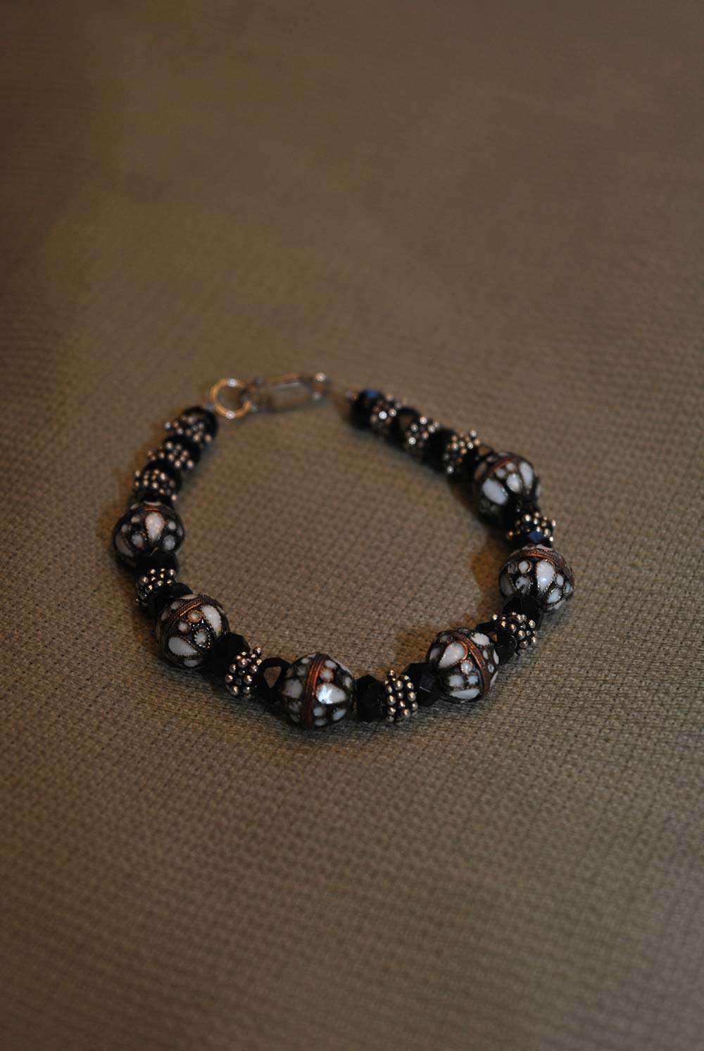 Encircle you wrist with this black cloisonne and glass beads with sterling silver accent bead bracelet by Lynette Assarsson. Perfect for dressing up or down!