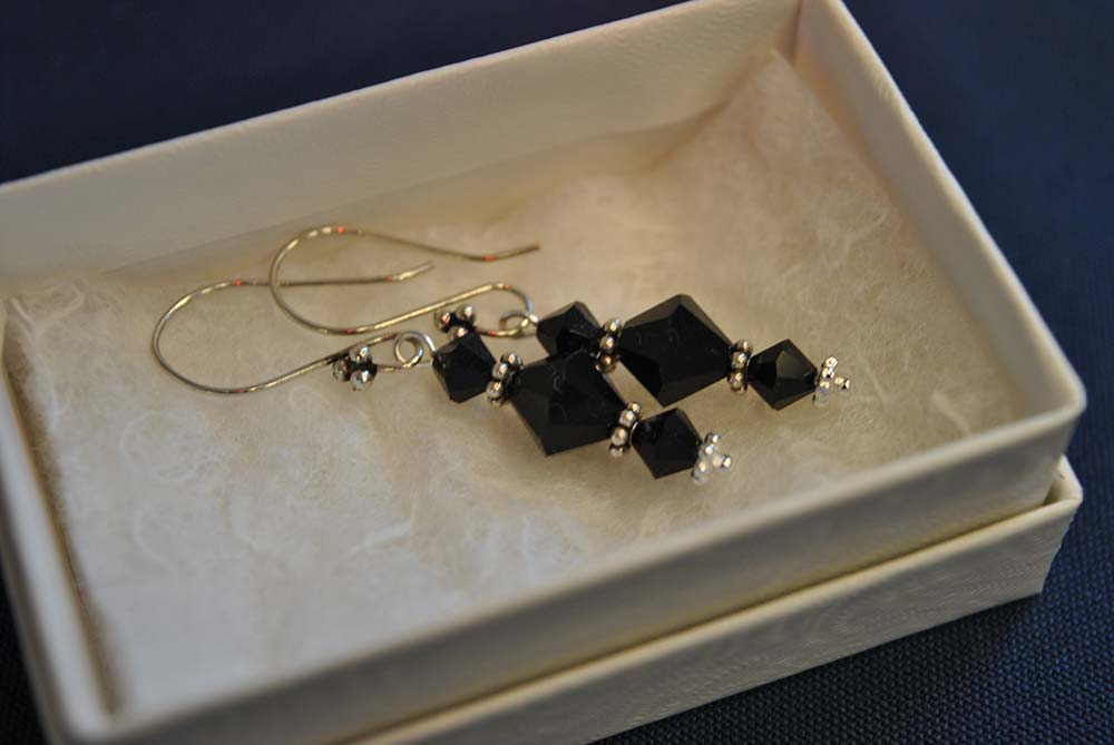 Black Swarovski crystal earrings with sterling silver accents and findings by Lynette Assarsson to go with that simple black dress!