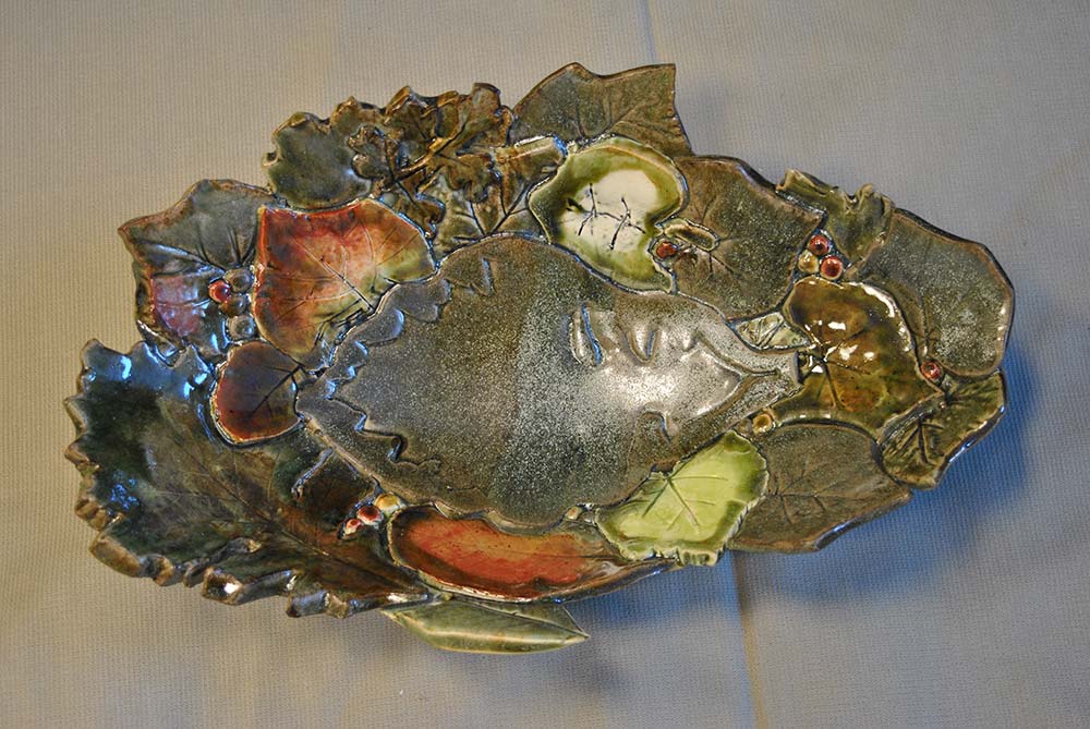 A beautiful ceramic leaf bowl created by Middle School Students.