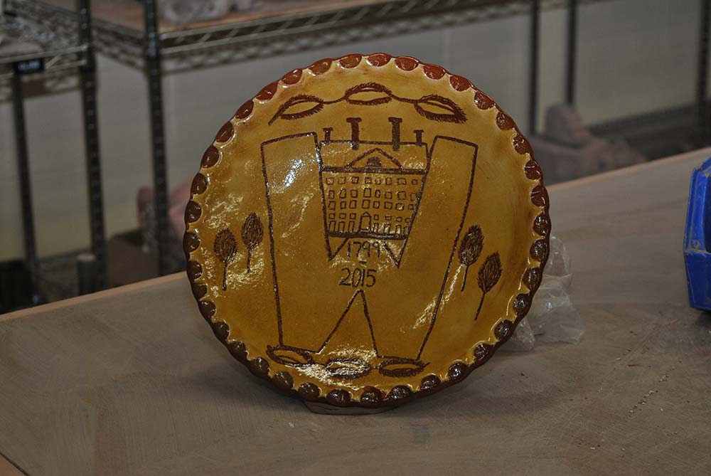 This one-of-a-kind ceramic pie plate was handmade by Keri McGill '18. Pie plates are a part of Westtown history and Keri's design incorporates an image of the Westtown W with Old Main Hall. Apple pie included.