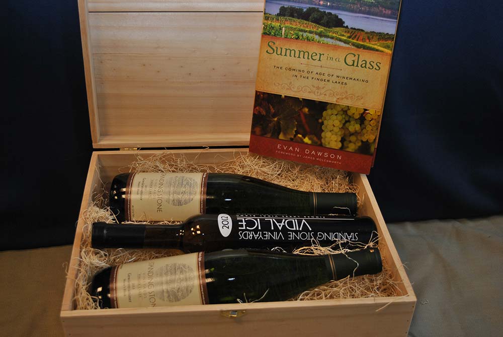 A mixed half case (6 bottles) of award-winning Finger Lakes wine from Standing Stone winery. Accompanying the wine is a hardcover book, Summer In A Glass, which focuses on wineries in and around the Finger Lakes region of New York State, along with a copy of the Finger Lakes Wine Gazette Winter 2015. Individual tasting notes for each of the wines and a general description of the winery are also included.